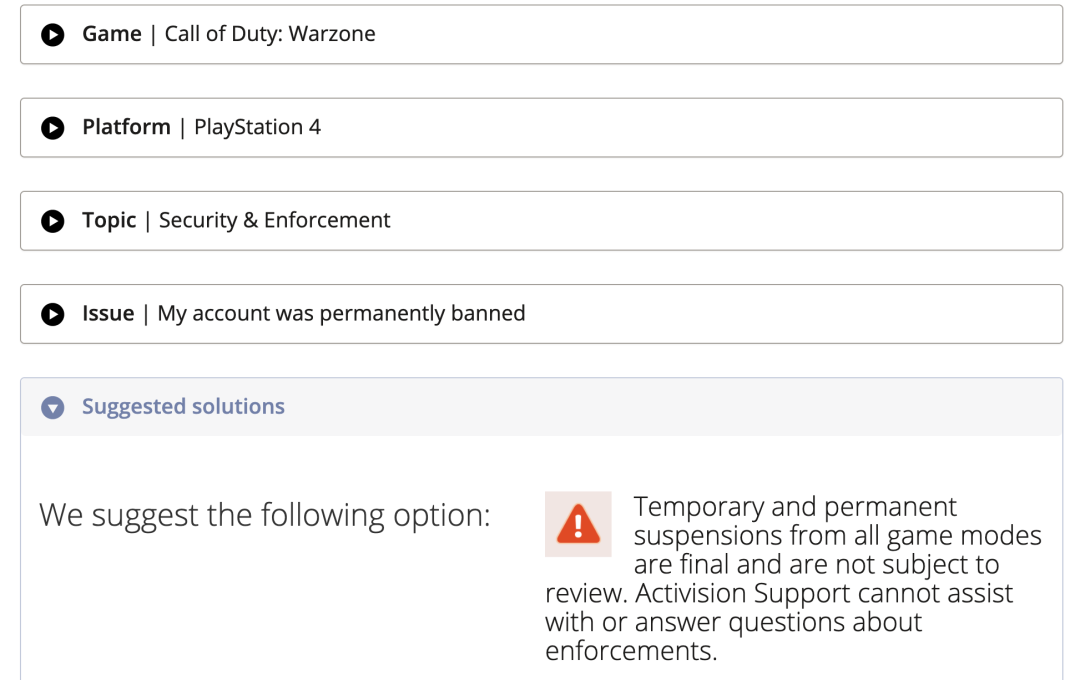 在此前动视官方关于打击作弊的召唤战争声明中,但在联系动视或IW后,现代